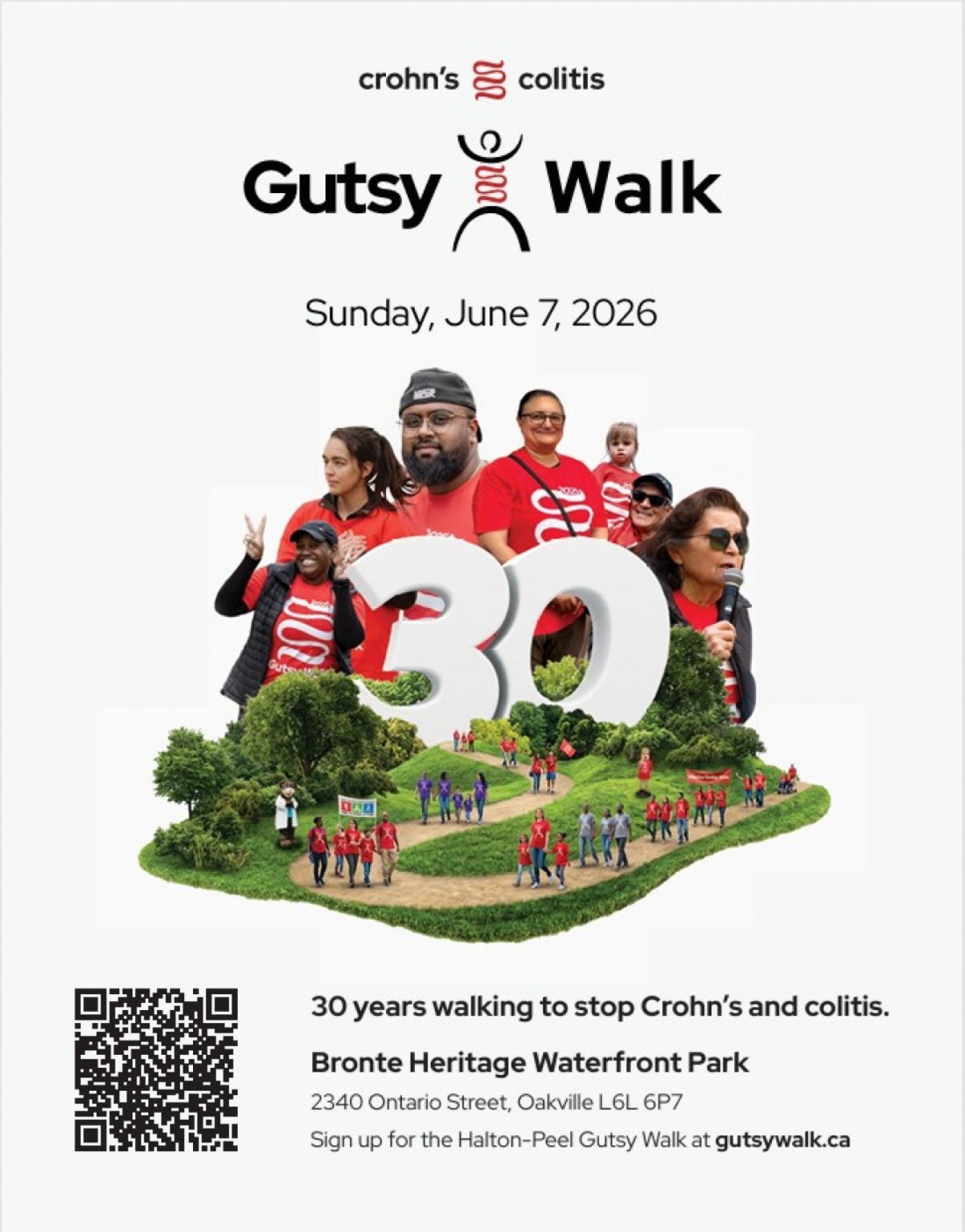 Celebrate 30 years of community, courage, and commitment at the Halton-Peel Gutsy Walk! Join us at Bronte Heritage Waterfront Park, 2340 Ontario Street, Oakville, for a fun, family-friendly day supporting Crohn’s & Colitis Canada.