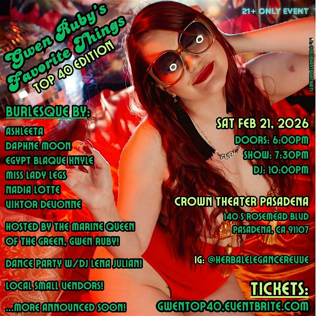 Come celebrate Gwen Ruby's best birthday yet with a night of burlesque, vending, and her TOP 40 favorite things!