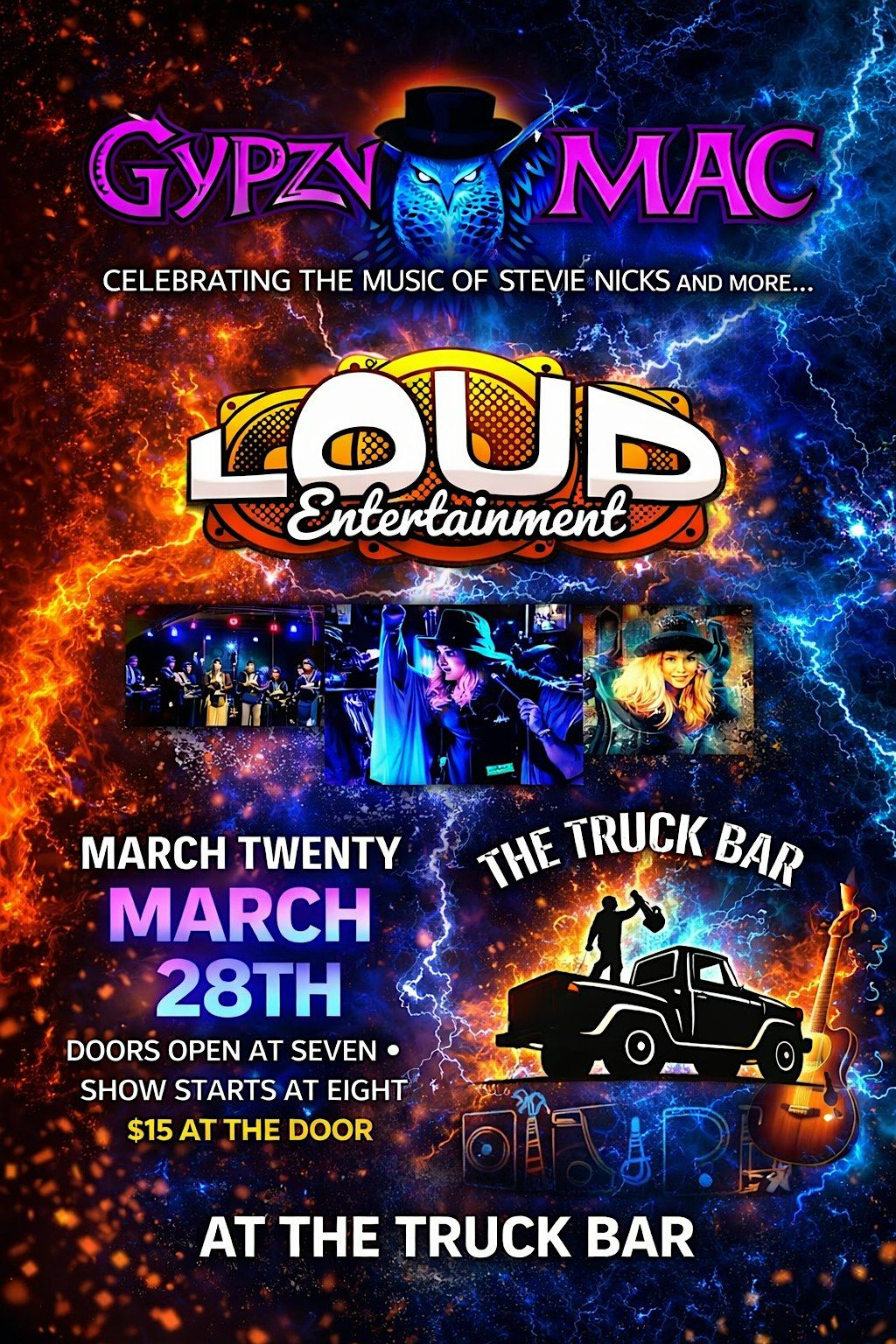 Gypzy Mac — a Stevie Nicks Tribute Band — brings the magic, mystery, and timeless songs to The Truck Bar for an unforgettable night of ethereal rock and witchy vibes. Flowing melodies, iconic hits, and pure Fleetwood Mac–era enchantment await.