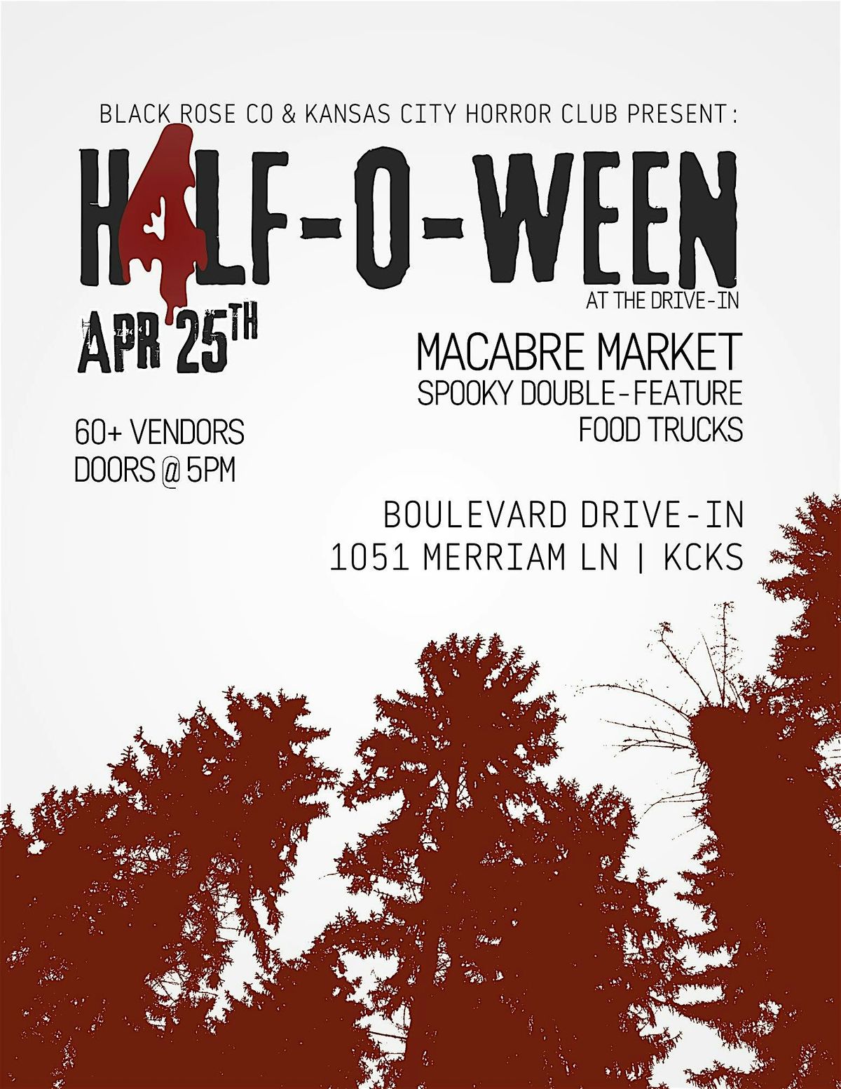 Think blood, laughs, and drive-in mayhem. Come shop the macabre, dress spooky, and settle in for a night of ridiculous horror fun under the stars.