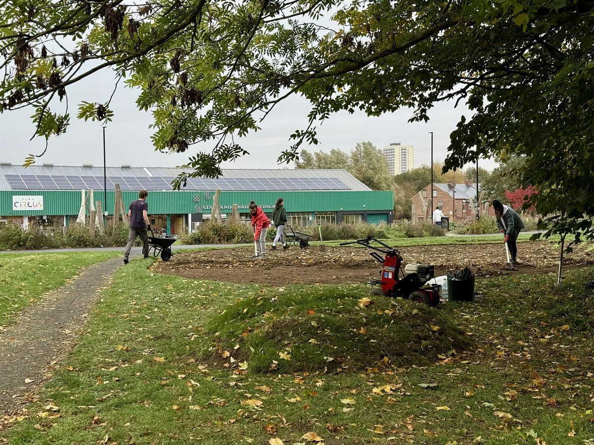 In 2025, hundreds of people got stuck in with meadow creation at the City Stadium, as part of Wild Ouseburn. This involved removing turf, which was reshaped to create a more undulating landscape at the City Stadium. These mounds will provide a new topographical features, an in turn new habitat microclimates for wildlife.