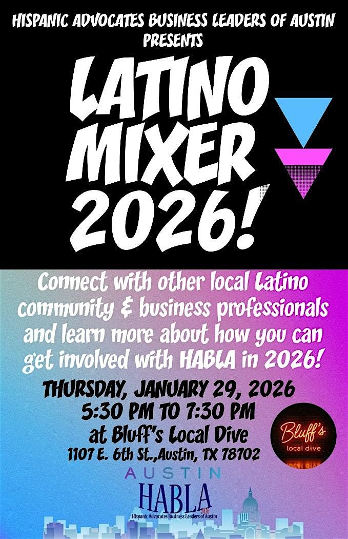 Join Hispanic Advocates Business Leaders of Austin (HABLA) for our first social & networking mixer of 2026! Come meet other local Latino Business and Community Leaders and learn how you can get involved with HABLA in 2026!