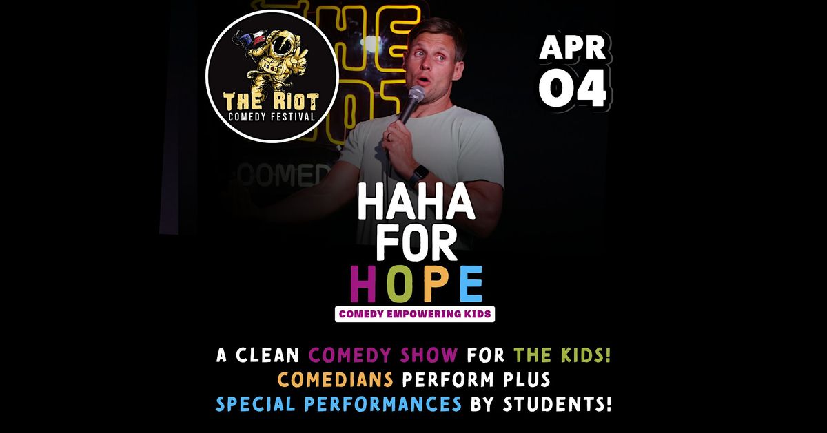 Join us for a night of laughter and giving back at the Haha for Hope Charity Comedy Night, part of the 2025 Riot Comedy Festival! This unique, all-ages event features a clean comedy show by some of the best comedians from around the country with a special performance by the talented graduates of Haha Comedy Academy.