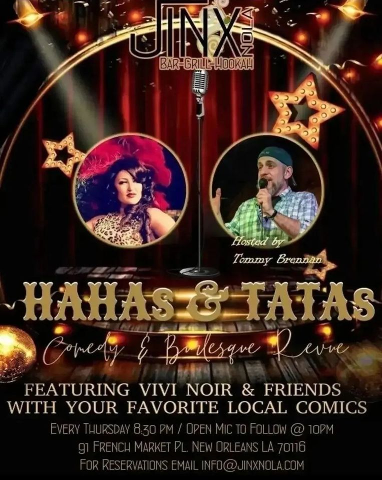 Burlesque and Comedy ShowJoin us EVERY Thursday at Jinx Bar & Grill for a night of Burlesque and comedy as your favorite dancers and Nolas best comedias put on a sexy and hilarious show just for you!