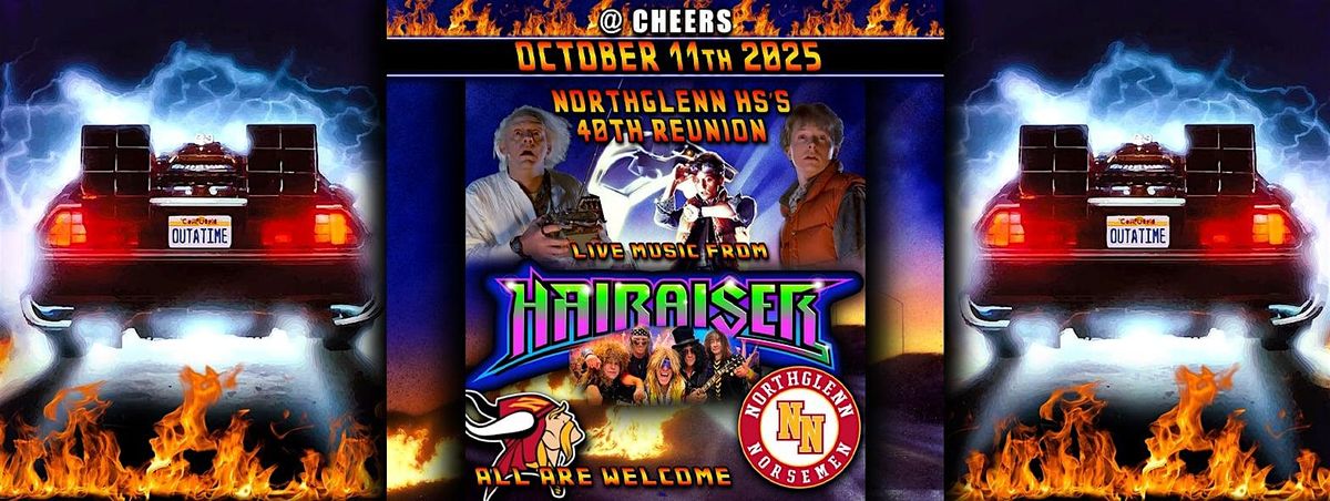 Welcome to the Hairaiser 80's Night Northglenn High-school 40th Reunion Party! Get ready to travel back in time on October 11, 2025 at 8:00 PM at @ Cheers. Dust off those leg warmers and tease up that hair because we're bringing the 80's back!