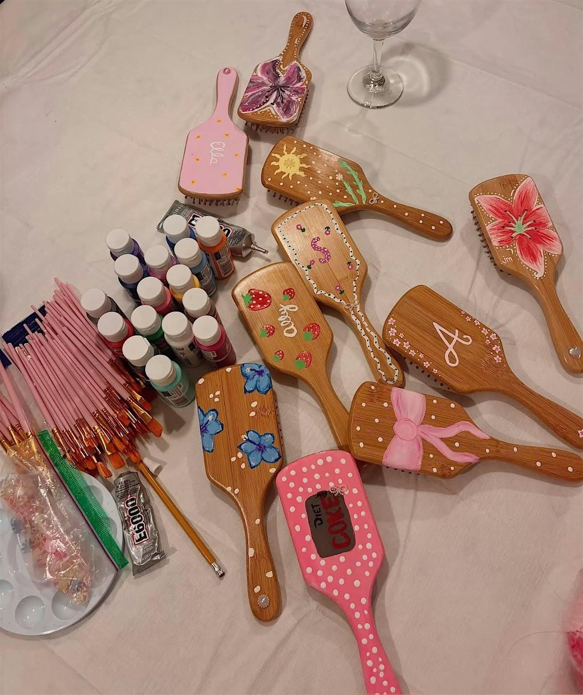 Join us for a cozy, creative night where you’ll design your own custom bamboo hairbrush using acrylic paint. We’ll provide the brushes and all the supplies — you just bring your ideas. Paint florals, patterns, quotes, or anything that matches your vibe and leave with a one-of-a-kind brush that’s actually cute enough to keep on your vanity. Perfect for a relaxed girls’ night and a little creative reset.