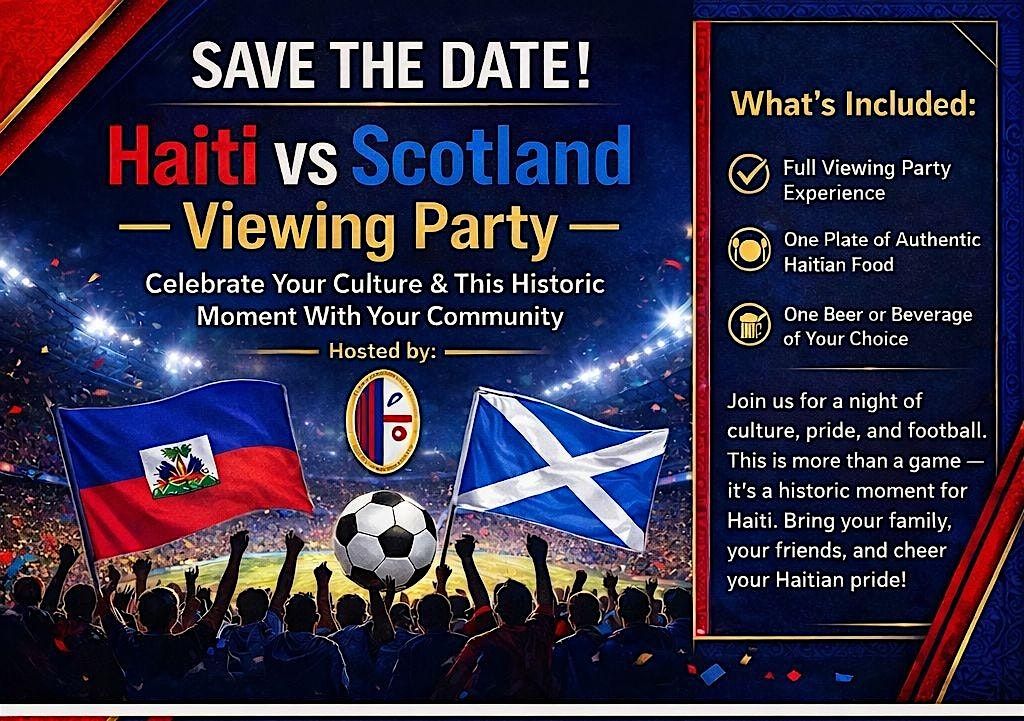 Join us for an unforgettable night of energy, culture, and nonstop vibes as Haiti takes on Scotland! Whether you're here for the game, the atmosphere, or the after party â this is the place to be.