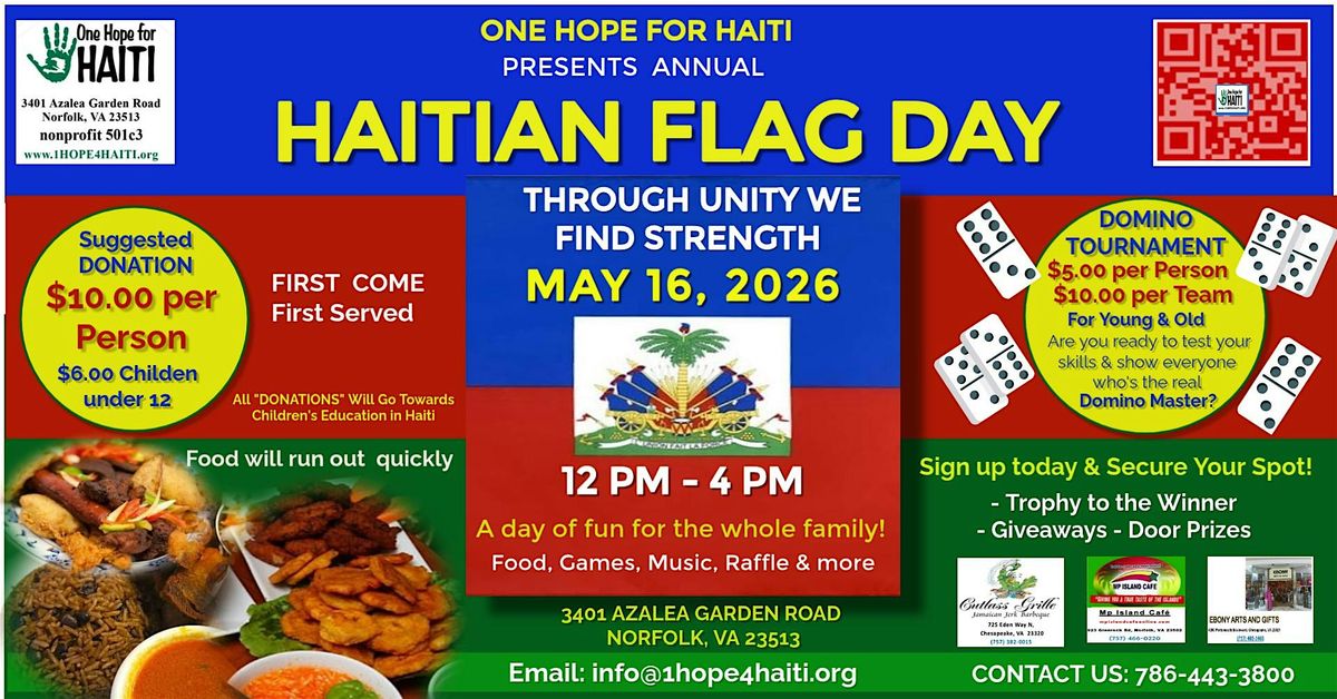 Join us for an awesome in-person gathering filled with fun, music, and lots of pride! It's the perfect chance to honor Haitian culture, heritage, and, of course, the iconic Haitian flag. Bring your friends and family to share in the good vibes and community spirit. Don't miss out on this vibrant celebration!