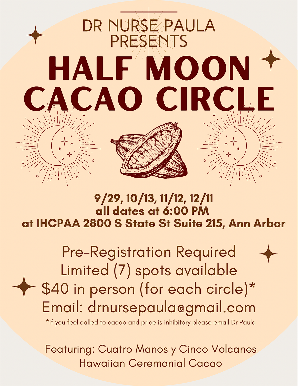 Join us for an indigenous medicine Cacao circle. Take time to slow down and connect with yourself, nature, and you guardians.About this Event