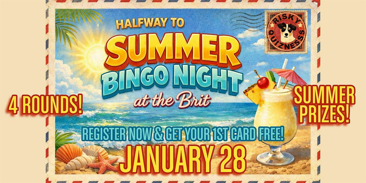 #HalfwayToSummer #BingoNight #RiskyQuizness #TheBrit #WinterWho #SummerEnergy #SunshineStateOfMind #SanJoseEvents #BingoVibes #ManifestingSummer
