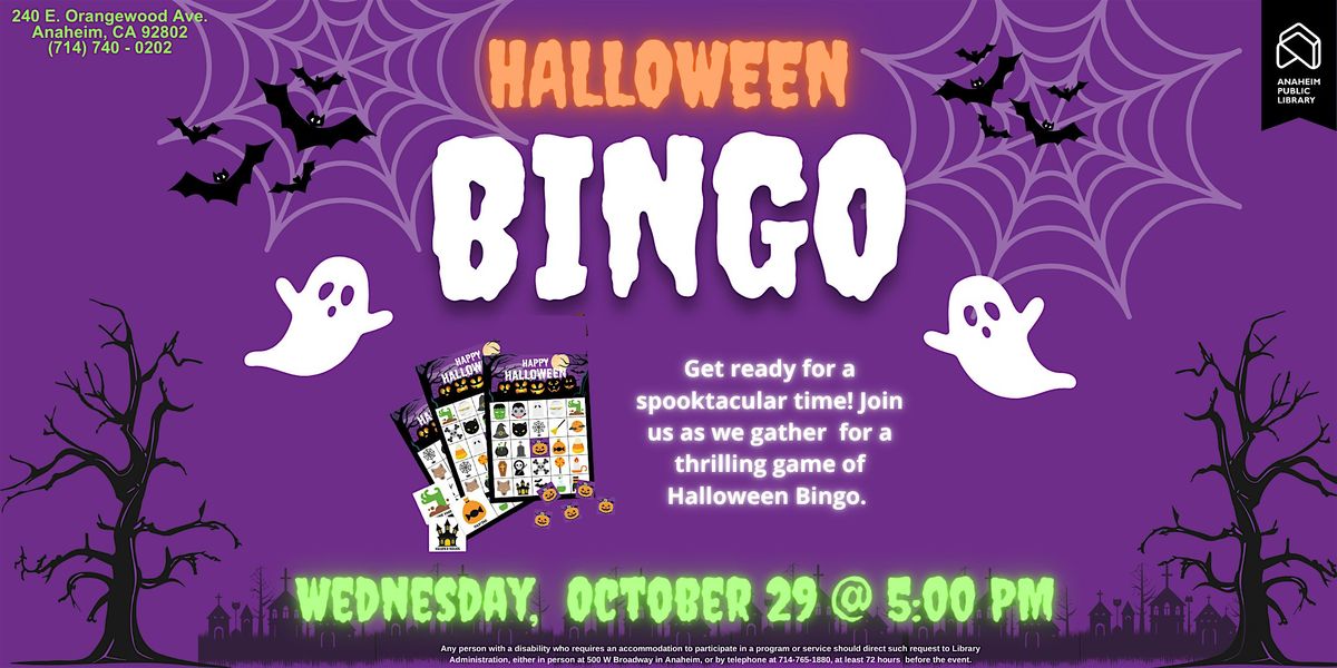 Get ready for a spooktacular time! Join us as we gather for a thrilling game of Halloween Bingo. All ages welcome. Snacks will be provided.About this Event