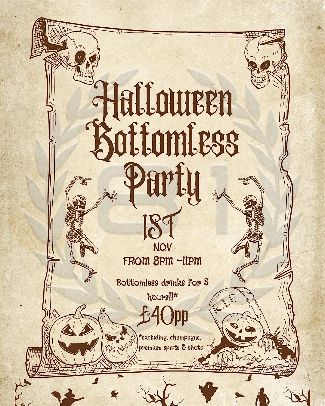 Get ready for a night of frightful fun and endless pours at our Halloween Bottomless Party! For three whole hours, enjoy unlimited drinks while soaking up the spooky atmosphere. Expect creepy cocktails, hauntingly good music, and plenty of tricks (and treats).