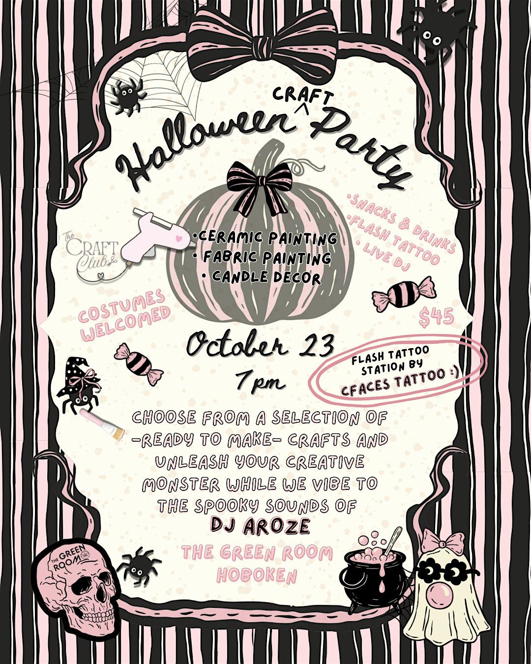 Join us for a Halloween Craft Party like no other 🎃✨ Your ticket includes guided craft instruction, a live DJ, and festive snacks! Plus, Cfaces Tattoo will be on-site offering spooky flash tattoos. Costumes encouraged but not a requirement! Come create, dance, and celebrate the season with us!