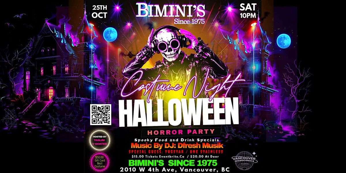 Two Full Premium Bars, Top Guest DJ from Vancouver Island, Surprise Artists, Showgirl Hostess, Spooky Food and Drink Specials, and a Costume Contest, all at the longest running nightclub in Kits, around since 1975.