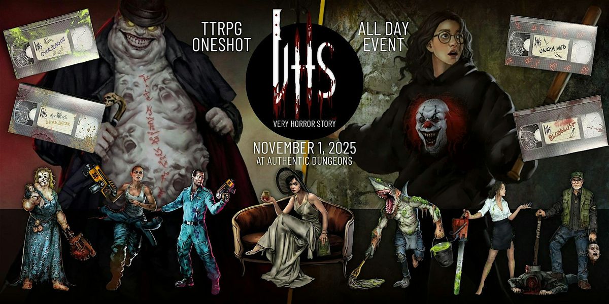 This event will host three different "directors" (Game Masters) running three different Very Horror Stories throughout the day in three separate sessions for a total of nine games!