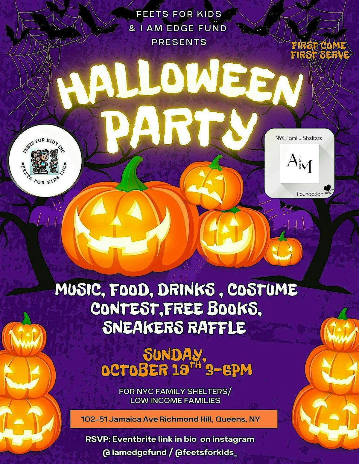 Join us for a spooktacular Halloween Party benefiting NYC Family Shelters! Get ready for a fang-tastic time at 102-51 Jamaica Ave where we'll have costume contests, sneaker give aways, and ghoulishly good treats. Let's come together as a community to celebrate and support families in need. Don't miss out on the fun - mark your calendars now!