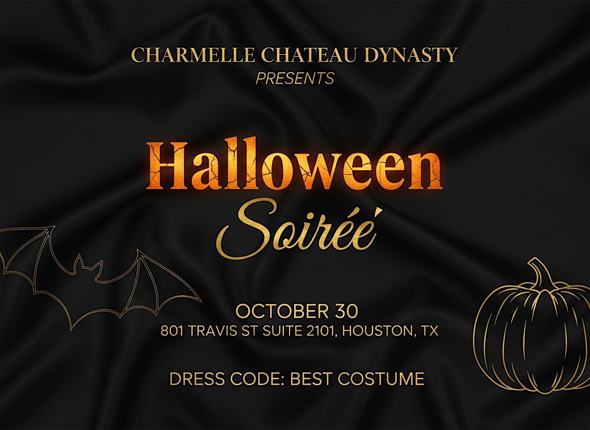 Welcome to the Halloween Soirée Houston Edition! 🎃 Join us at Charmelle Chateau Dynasty HQ on October 30, 2026, at 6:00 PM (Central Time) for a night of music, elegance, and spooky-chic vibes. Michael Myers, Pennywise, Chucky, goblins, and other frightening friends will serve you dinner with spooky class. Dress to impress and experience a night to remember. See you there!