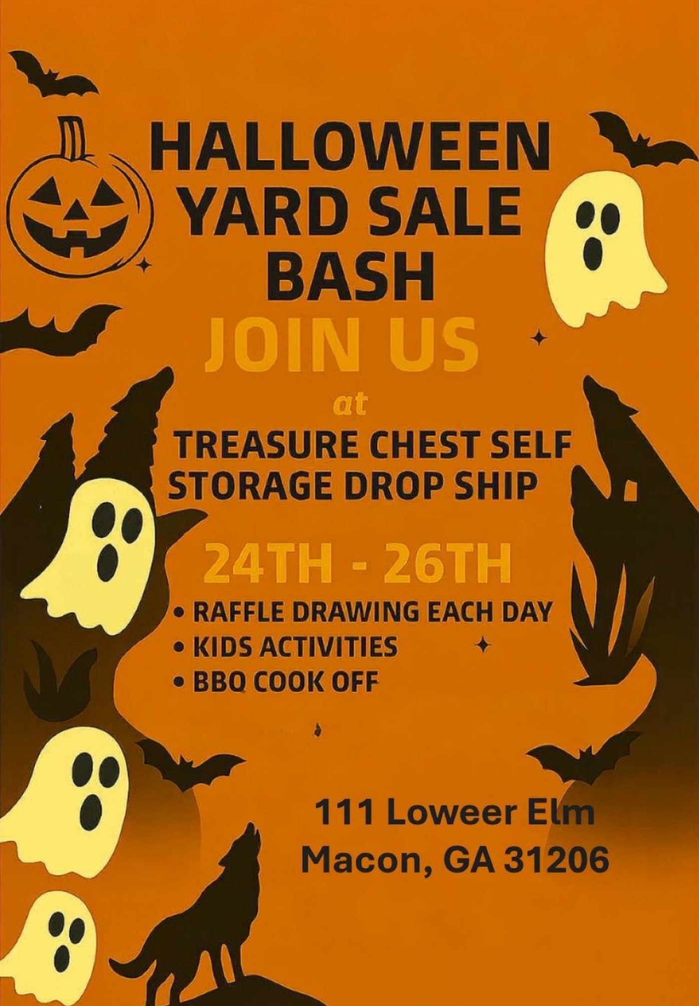 **Event Description: Halloween Yard Sale Bash!**Get ready for an unforgettable day of thrills and chills at our Halloween Yard Sale Bash starting on October 24th through to 26th a 3-day event of fun food spooky prizes.š