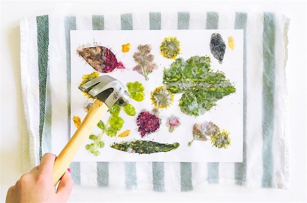 Learn how to create stunning, pressed floral designs by hammering flowers and leaves onto paper or fabric.