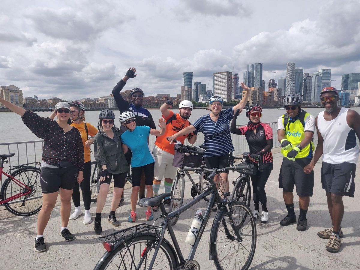 Meet from 9:50 am for a 10:00 am departure from . This ride is about 30 miles, mainly flat with some small hills. Mostly paved surfaces. We will be riding at a slow leisurely pace, approximately 8-10 m/h. Good fitness is required. On the way back we will cross north of the river via Greenwich Foot Tunnel. Please note that the lifts might not be working and you will have to carry your bike down and up some stairs.