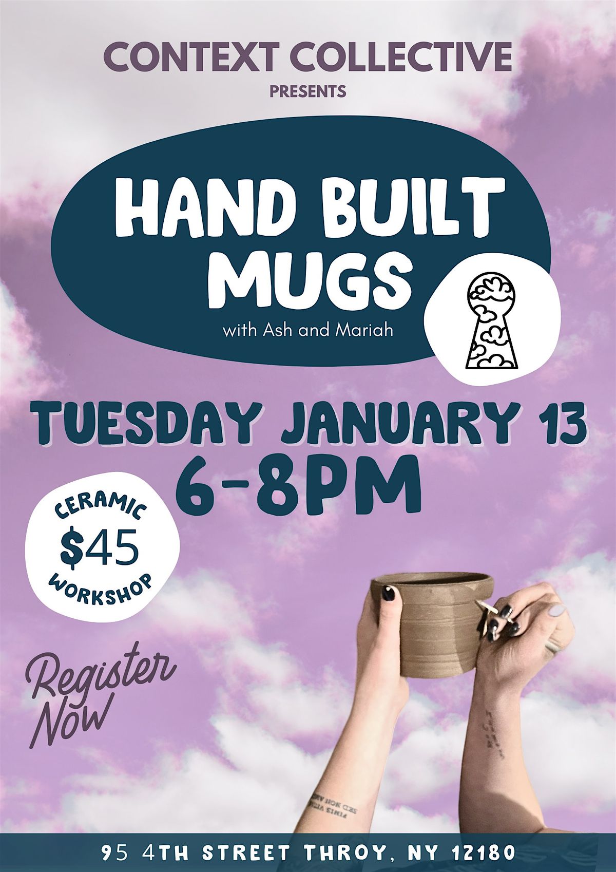 In this beginner friendly workshop, we will be exploring how to make handbuilt mugs! Explore techniques like slab building, coiling, and carving to create your one of a kind (and probably new favorite) mug! Or come for the instruction and use your new skills to make a creation of your own.