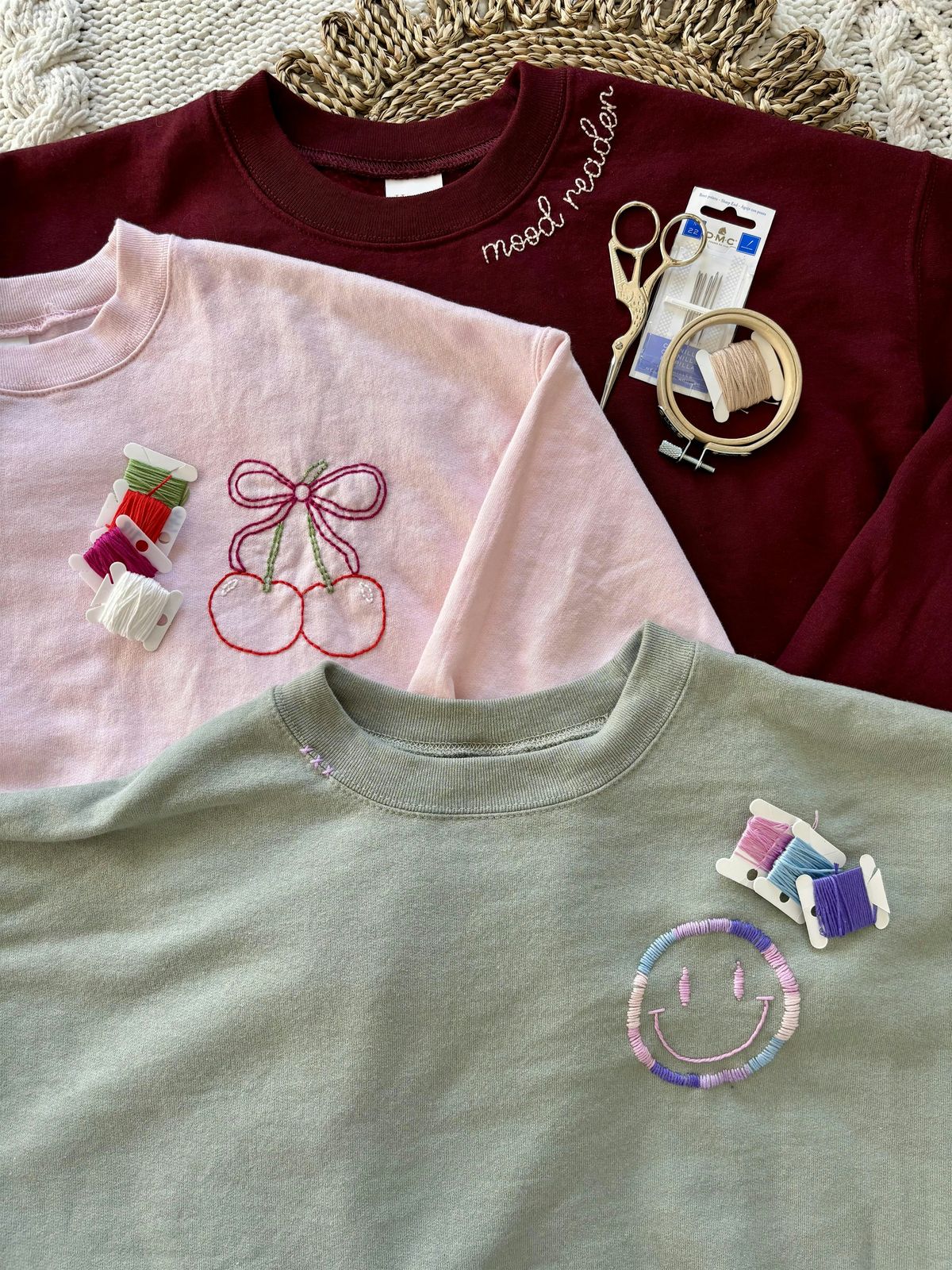 Come stitch, laugh, and leave with a sweatshirt that feels completely you!