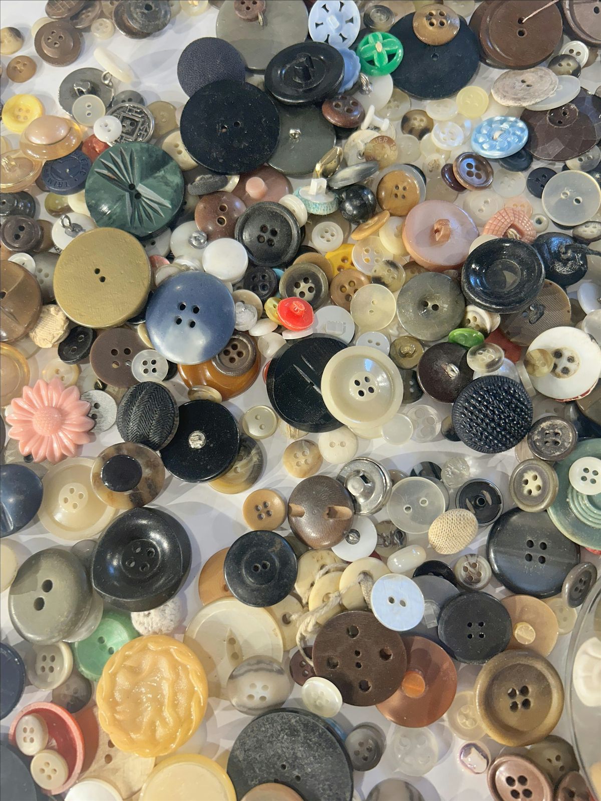 - A wide variety of vintage buttons, thread, and fabric swatches