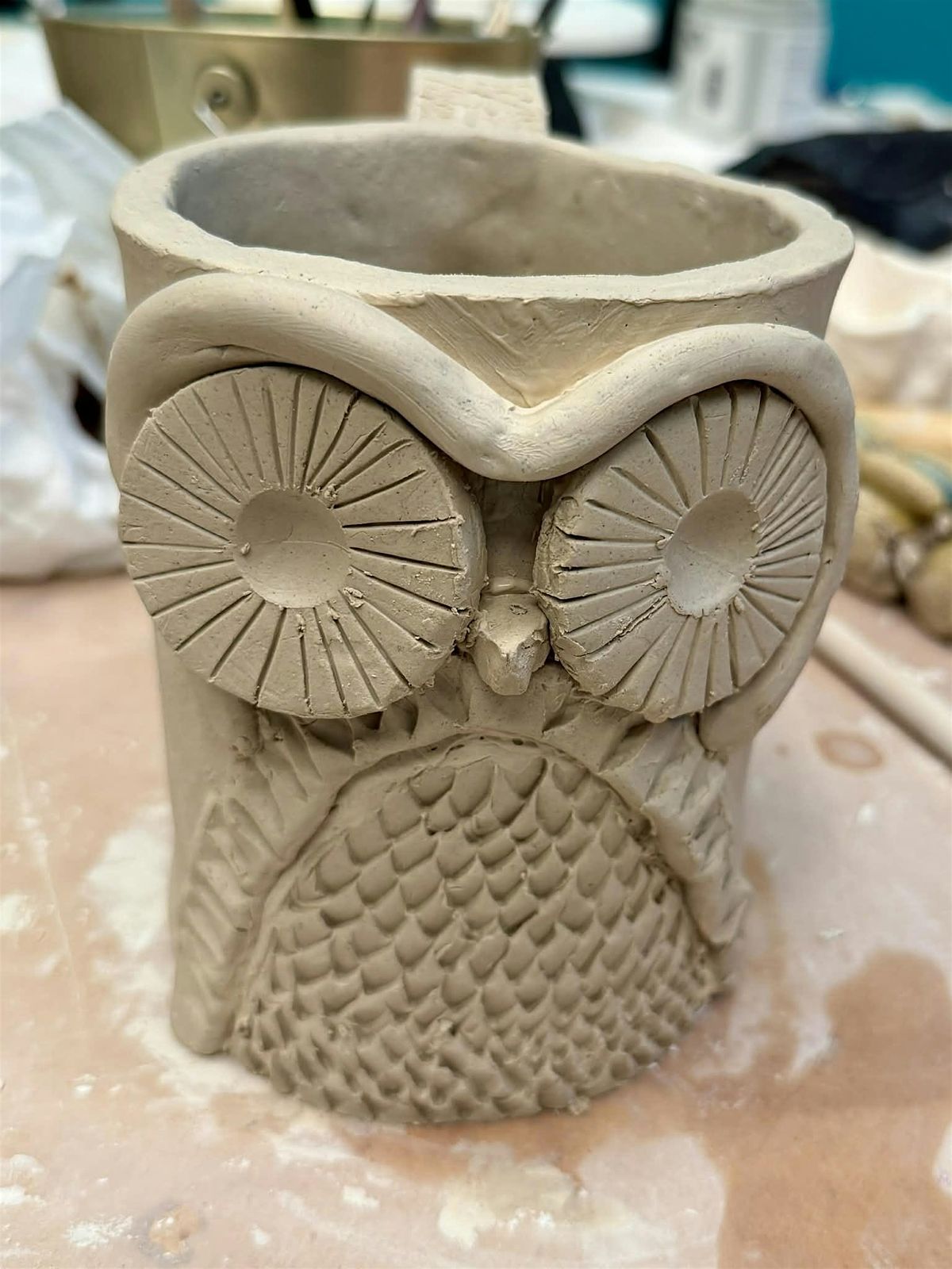 In this 2-hour handbuilding clay class, you'll make a mug from start to finish. Seasonal themes will be available and posted on social media, but our instructor welcomes any who wants to do their own thing. Students have access to all stamps, texture mats, cookie cutters, and tools in the studio.