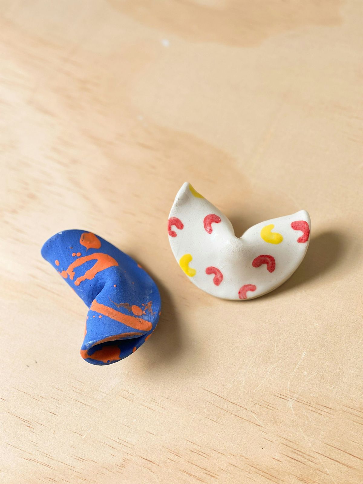 You'll make and decorate up to two interactive fortune cookies in class — one to keep and one to give away. All clay, underglaze colors, and tools are provided.