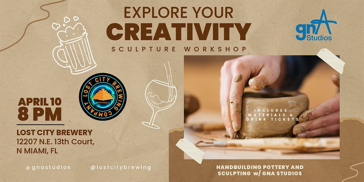 Join us for a fun and relaxed session of handbuilding pottery and sculpting! Whether you're a beginner or just want to get creative, this event is perfect for you. You will lear 3 techniques and leave with a few materpieces. Taking place at Lost Ciry Brewing so some drink tickets and all materials are included. Bring some friends, your imagination and let's make some cool art together!