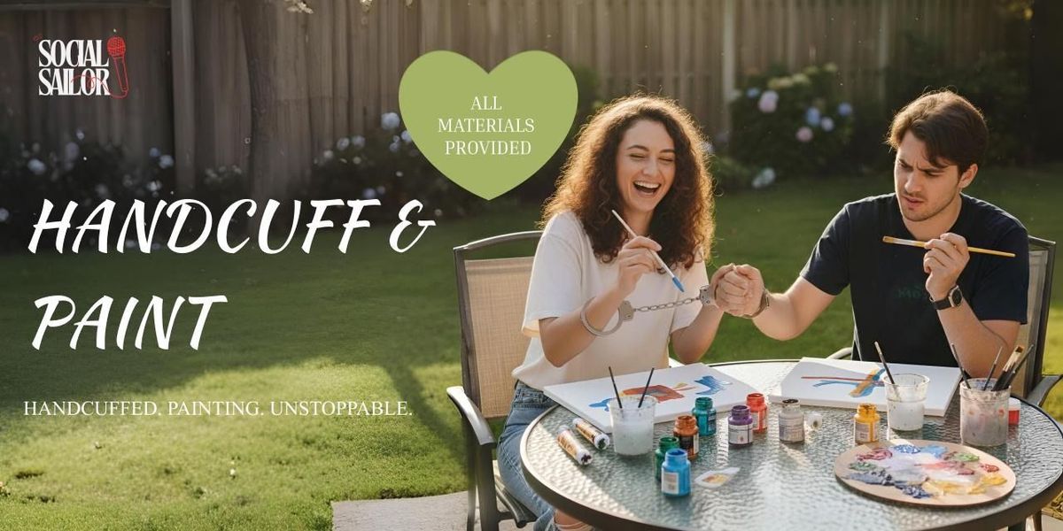 Get handcuffed to your partner and take on the challenge of painting together on one canvas. Since both of you must move and paint as a team, it turns into a hilarious and memorable experience filled with teamwork and laughter. No painting skills are required — just come ready to have fun and enjoy the playful chaos while creating a unique artwork together. Bound together. Paint together. Laugh together.