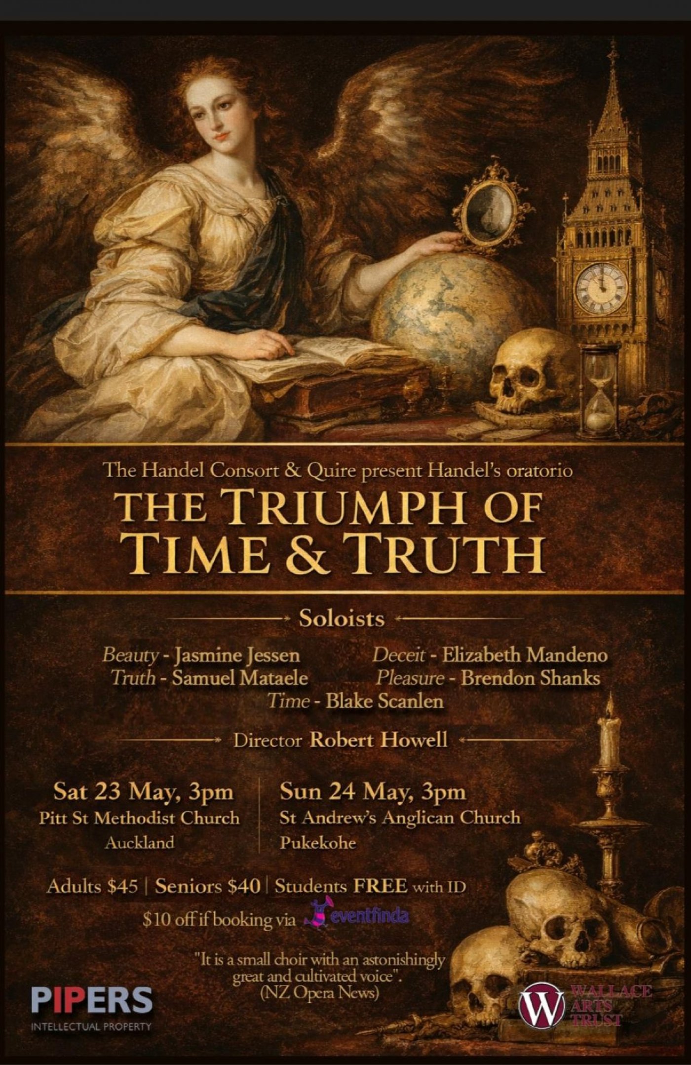 An enviable collection of soloists will join us including Elizabeth Mandeno, Jasmine Jessen, Samuel Mataele, Brendon Shanks and Blake Scanlen. Will Beauty maintain her charms and looks, or will Time and Truth rob her?