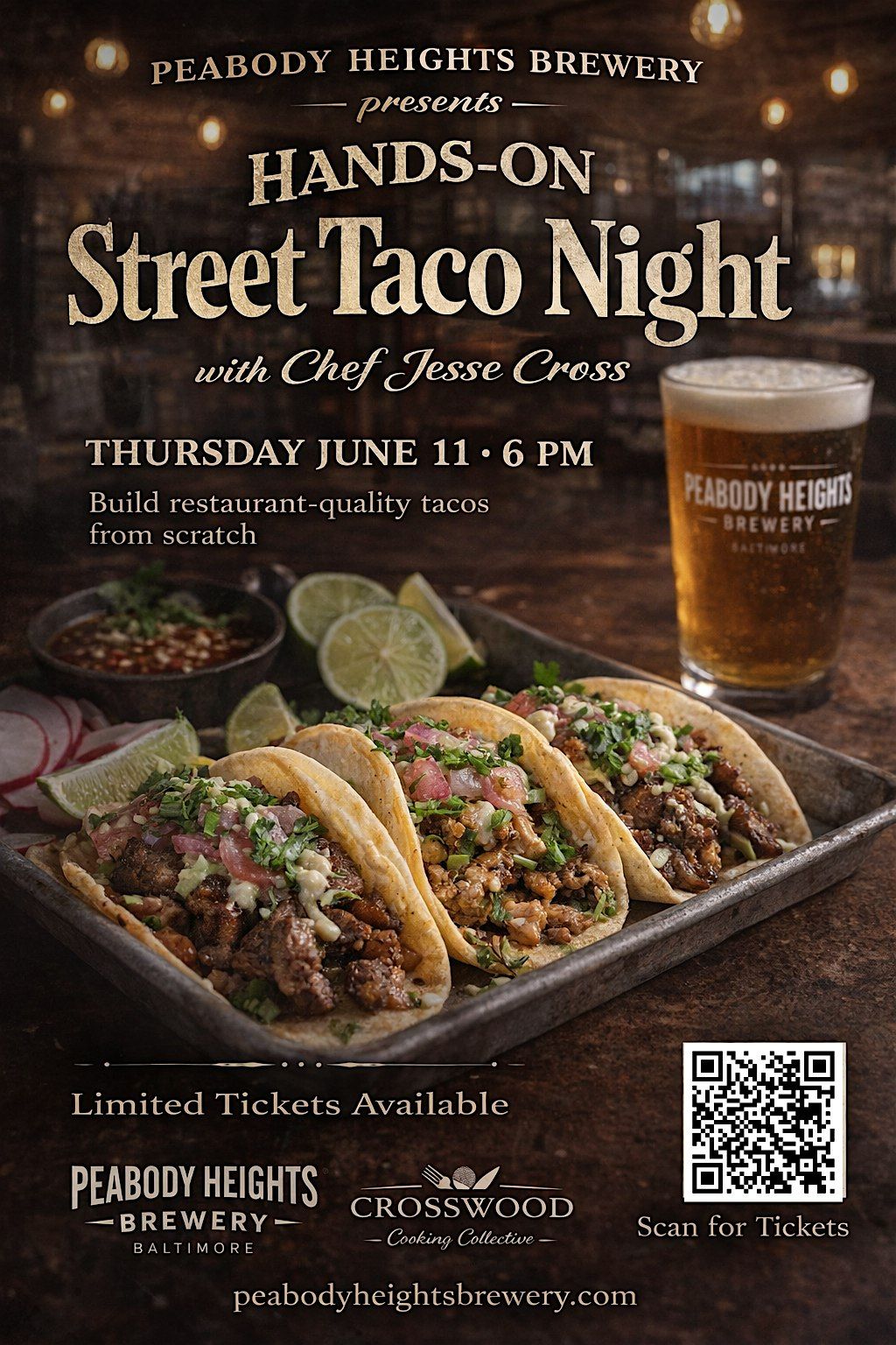 Join Chef Jesse Cross of Crosswood Cooking Collective at Peabody Heights Brewery for a fun, hands-on cooking class where you’ll learn how to build restaurant-quality street tacos from scratch in a relaxed brewery setting.