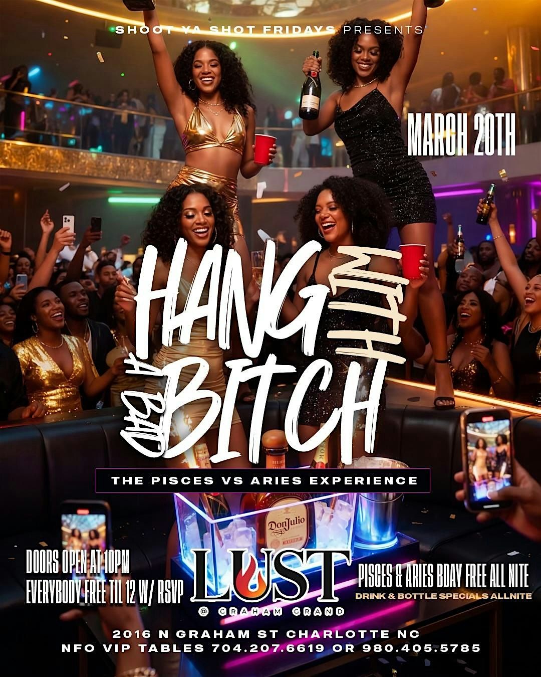 Charlotte, get ready for one of the most lit Friday night experiences in the city. Shoot Ya Shot Fridays presents Hang With The Bitches, a high-energy birthday celebration bringing together Pisces and Aries for a night of drinks, music, and unforgettable vibes.