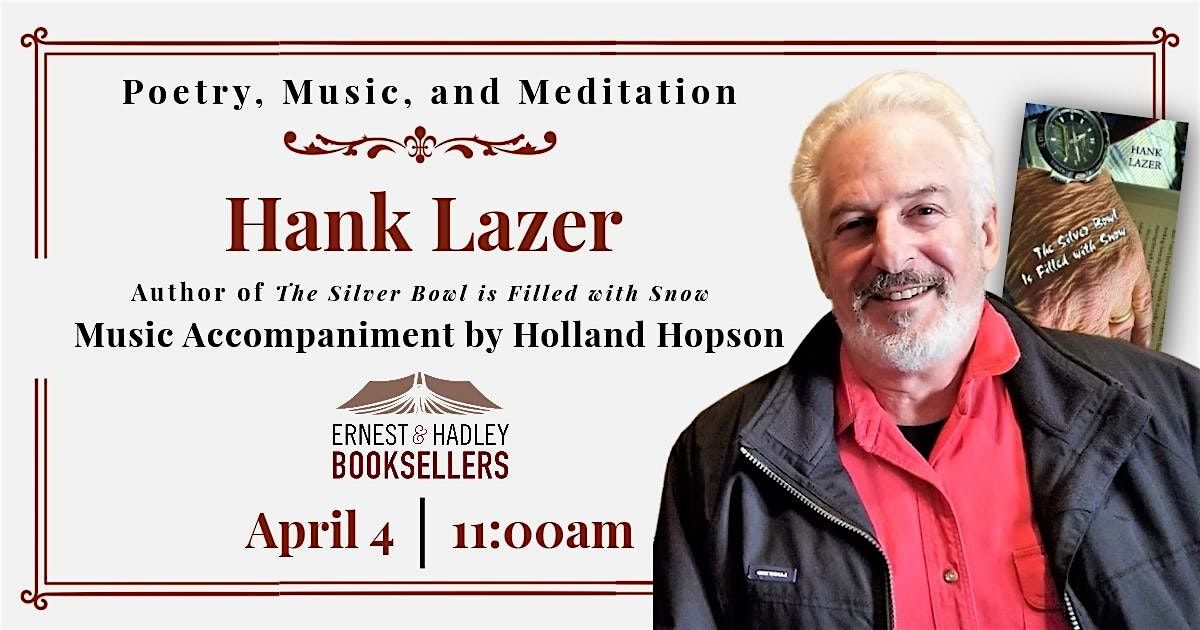 Join Ernest & Hadley Books in the Brick House as Hank Lazer introduces his latest collection: The Silver Bowl is Filled with Snow; featuring Holland Hopson's live musical accompaniment.