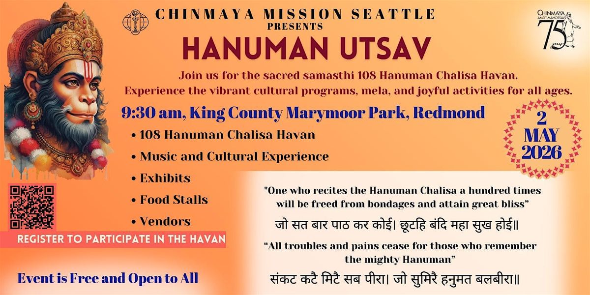 Chinmaya Mission Seattle’s Hanuman Utsav with it’s highlight, the Sacred Samashti Hanuman Chalisa Havan, is almost here! We warmly invite you to this fabulous opportunity to partake in the power of the Hanuman Chalisa!