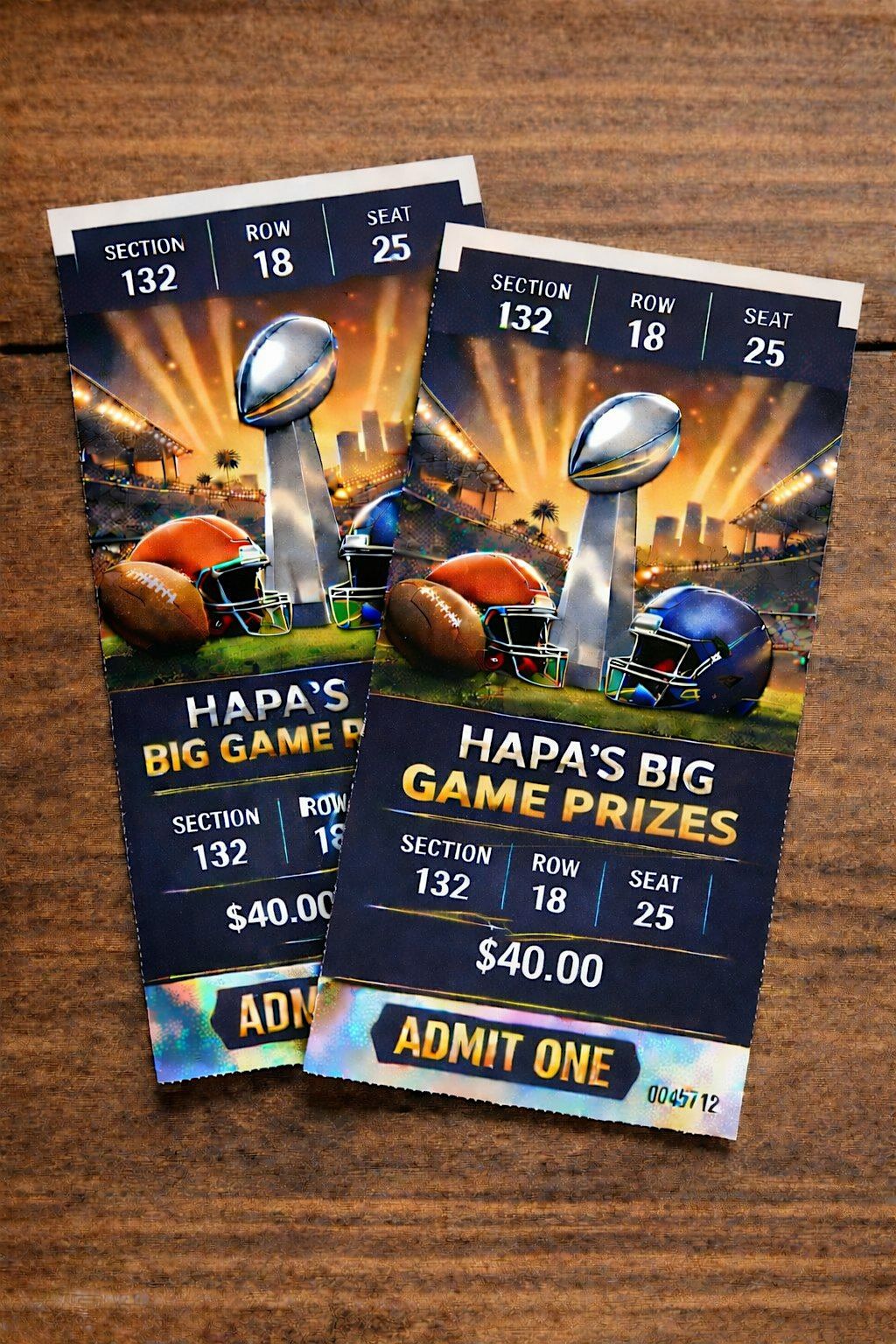 For $40, you'll receve a custom Hapa's / Fitz&Whit Pint Glass, a beer of your choosing, and prizes including some awesome swag, sports memorabilia, and TWO SUPER BOWL TICKETS!!!