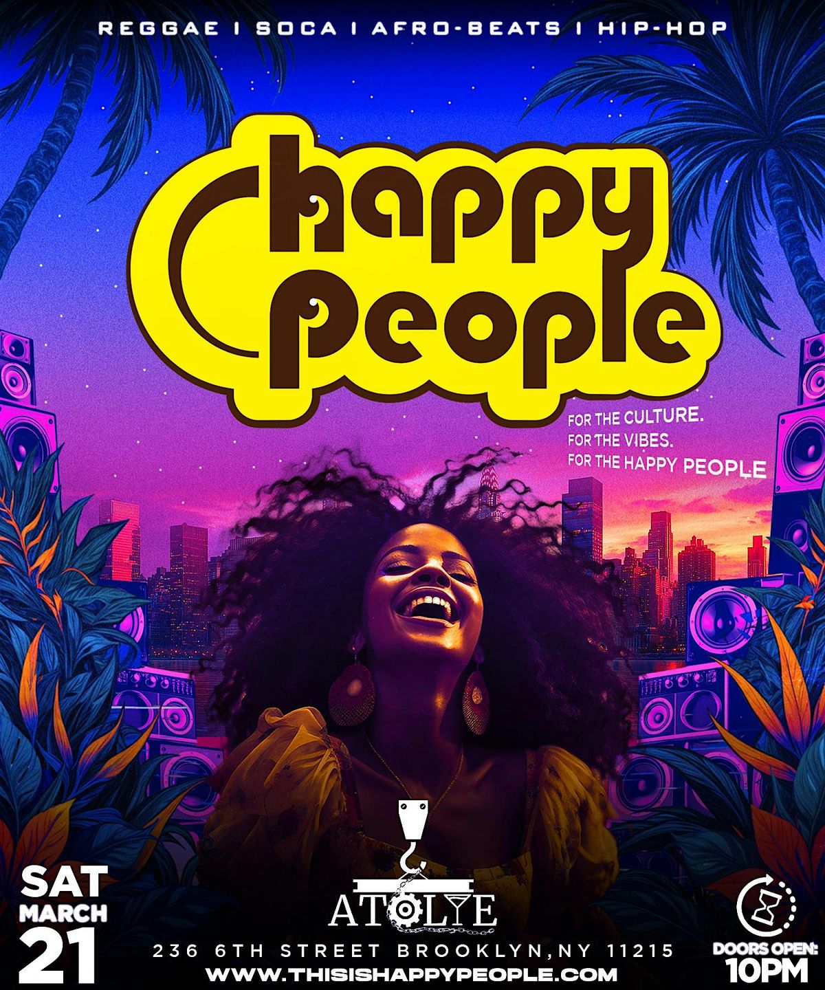 Born from the heartbeat of the Caribbean and the rhythm of the city, Happy People is where Reggae, Soca, Afrobeats, and Hip-Hop Blends collide to create one unforgettable vibe. This is where good energy lives — where you leave your stress at the door and step into pure happiness.