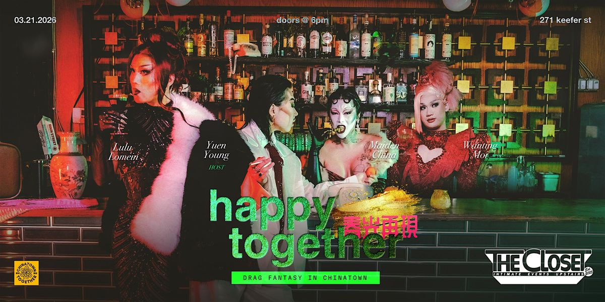 happy together 春光再現, inspired by the iconic 1997 Hong Kong film 春光乍洩, is a drag fantasy blooming in Chinatown. Expect intimate flirtations, close whispers, cultural sensations, and a full house of Asian excellence ~ all at the city’s newest queer space: The Closet (271 Keefer St).