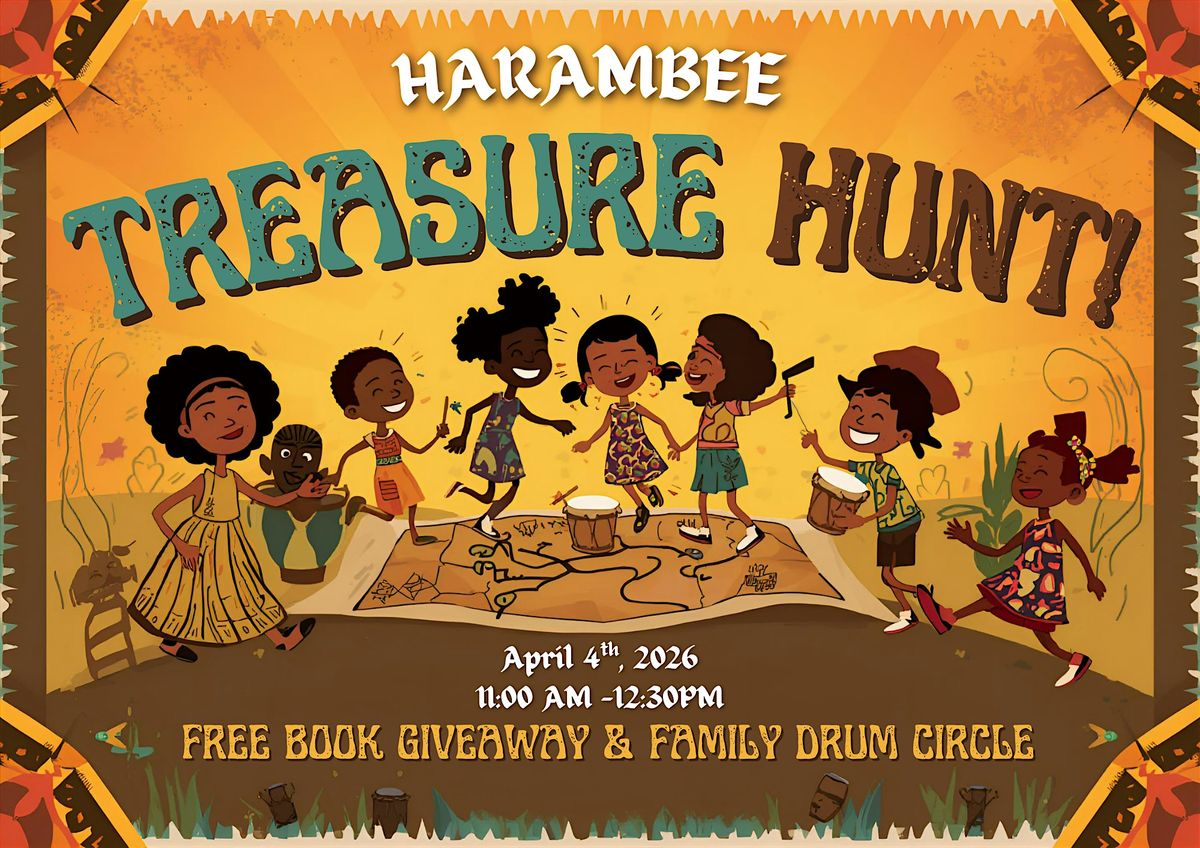 Join us for a fun-filled day of teamwork and discovery! Kids will enjoy an exciting treasure hunt with clues, puzzles, and prizes. Each child receives a free book to take home, and families can come together for a lively drum circle to celebrate community and creativity.