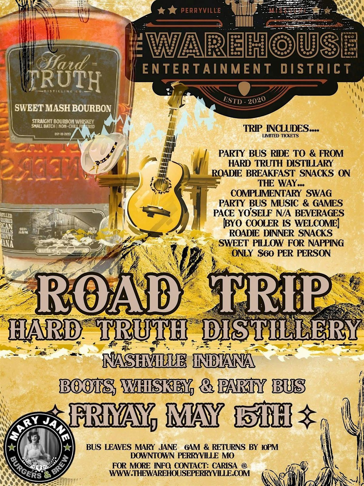 Join us for the Hard Truth Distillery Party Bus Experience — a one-day whiskey adventure from Mary Jane Burgers & Brew in Perryville to the legendary Hard Truth Distilling Co. in Brown County, Indiana.