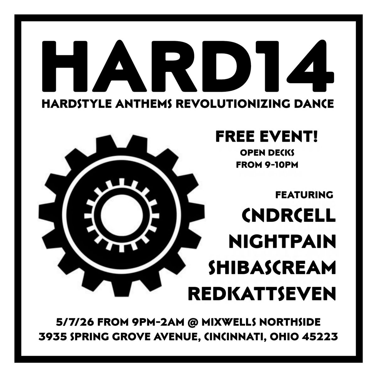 For the fourteenth edition of H.A.R.D. we are honored to host CNDRCELL, Nightpain, Shibascram and redkattseven! Open decks from 9-10 provided you are bringing the heat!