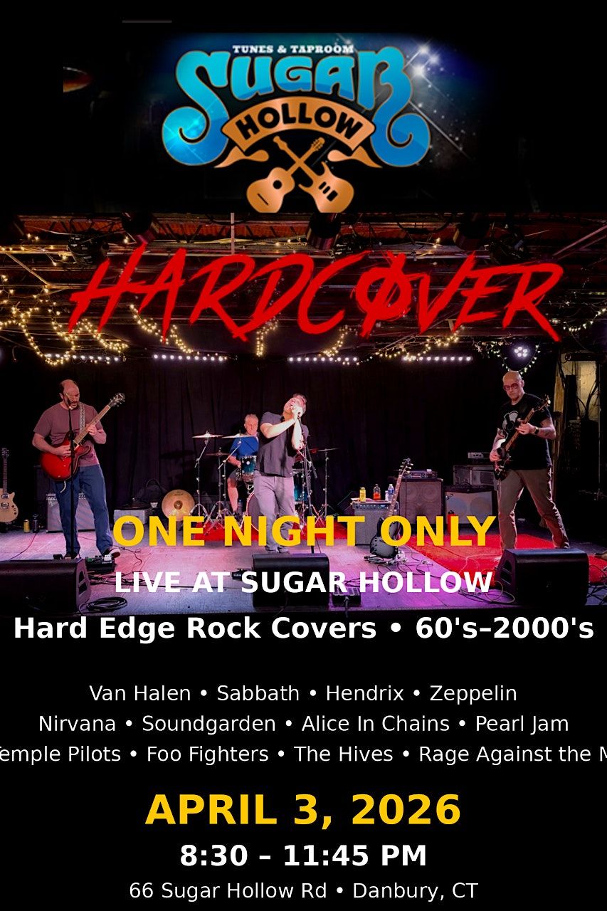 Get ready to rock out with Hardcover live at the cozy Sugar Hollow Taproom! This in-person gig is the perfect chance to enjoy some killer covers, good vibes, and great drinks. Whether you're a die-hard rock fan or just looking for a fun night out, Hardcover's got you covered. Grab your friends and come join the party!