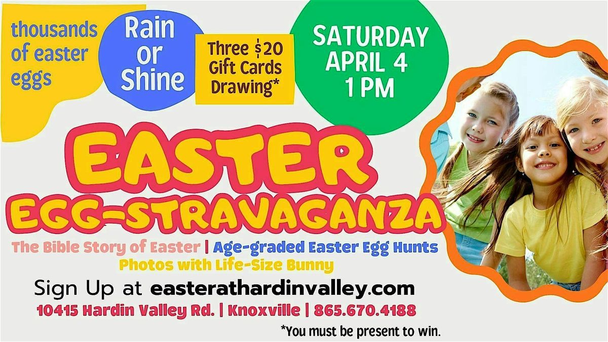 Welcome to the Community Easter Egg-Stravaganza at Hardin Valley Church! Join us for a fun-filled time which will include The True Story of Easter, Age-graded Easter Egg Hunts, and photos with a Life-Size Bunny.