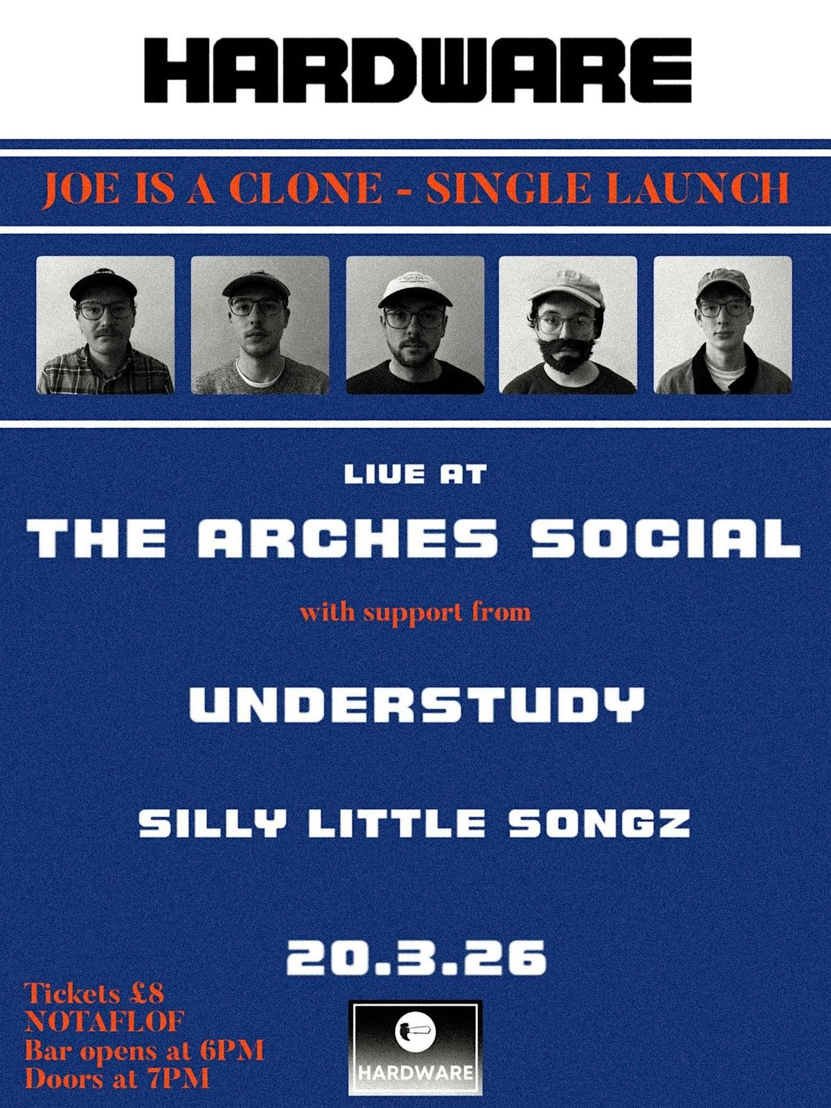 DIY wannabes Hardware are thrilled to announce their new single 'Joe is a Clone' [out 20th March] and to celebrate this they will be performing at The Arches Social in Leeds City Centre alongside UNDERSTUDY and Silly Little Songz.