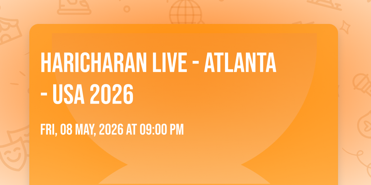 Internationally renowned playback singer Haricharan brings his spectacular live concert experience to the United States for an unforgettable night of music. Known for his soulful voice and powerful stage presence, Haricharan has captivated audiences worldwide with his timeless melodies and iconic songs.