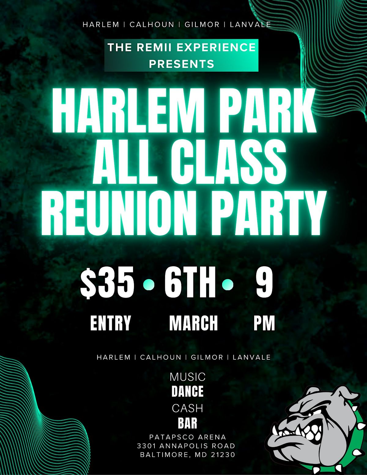 Harlem Park’s 1st All Class Reunion Party. Come out and enjoy good music, good drinks and vibe with old friends.