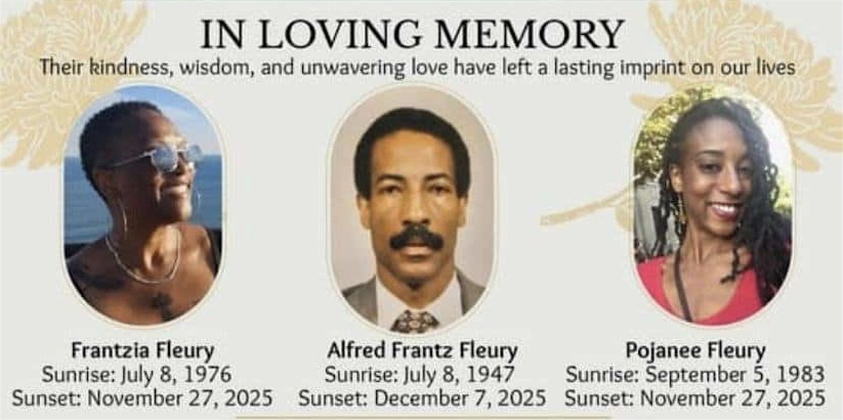 Join us as the Harlem community, alongside family, friends, faith leaders, and elected officials, come together on Friday, December 19, 2025, from 6:00 PM to 8:00 PM, in the Art Gallery on the 2nd floor of the Adam Clayton Powell Jr. State Office Building, to celbrrate the the lives of the Fleury family during a public vigil held in loving memory of: