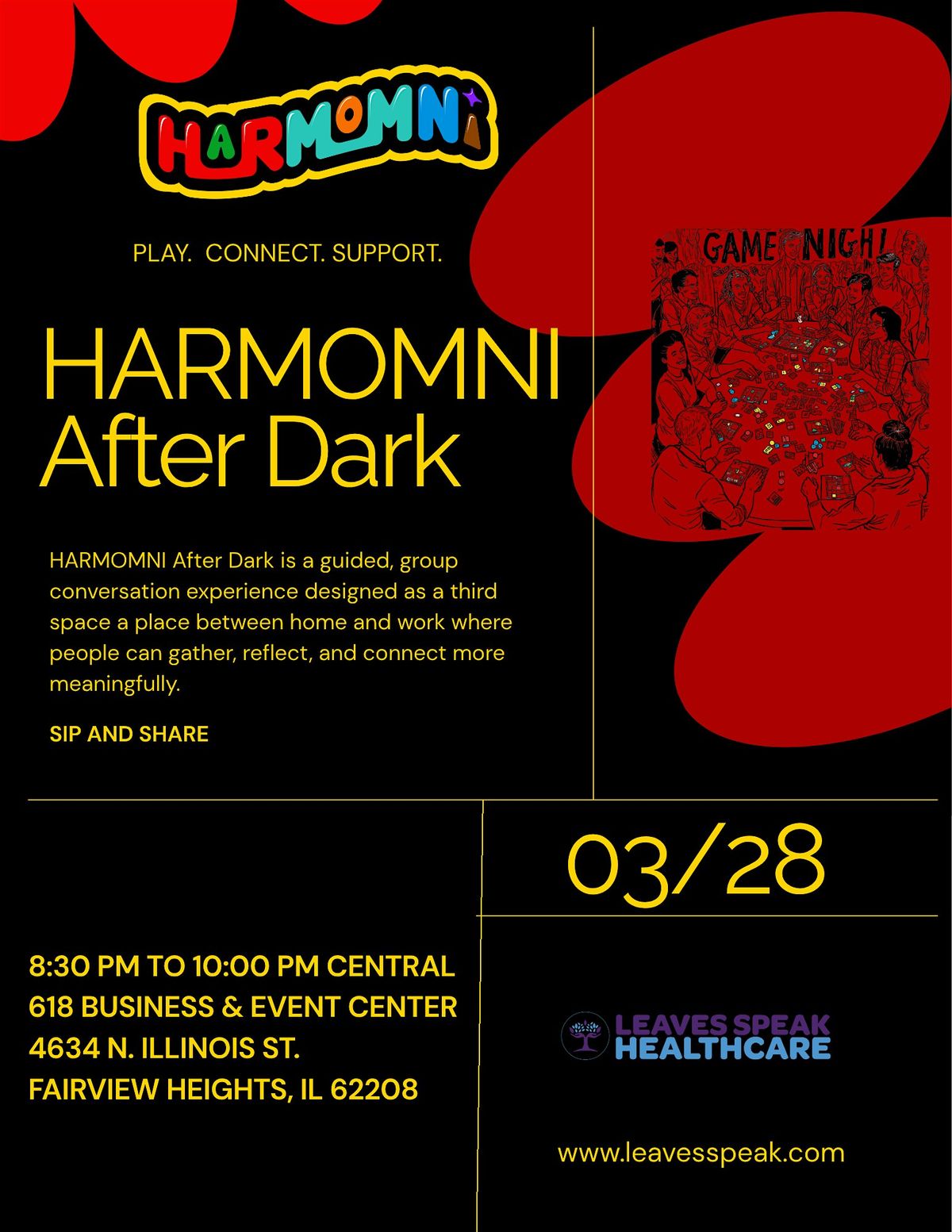 HARMOMNI After Dark is a guided, group conversation experience designed for those seeking more intentional connection.
