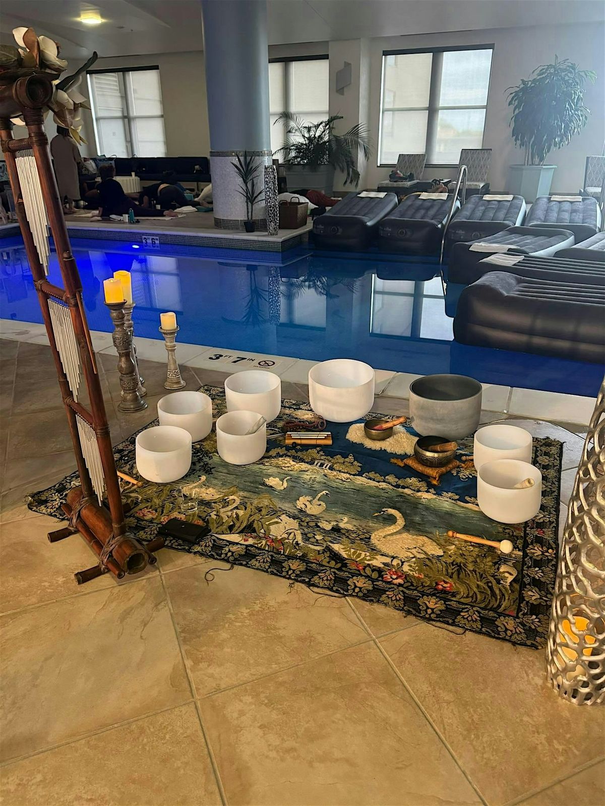 Info: Surrender to stillness as Harmonic Drift guides you into a deeply meditative state through the healing vibrations of sound. Supported either poolside or afloat in warm water, your senses soften as crystal bowls, chimes, and other sacred instruments create a cocoon of calming resonance around you. Eyes covered, body cradled, and mind quieted—you’ll drift between the conscious and subconscious, where the body restores and the spirit re-aligns. Let the harmony of sound and water carry you inward, where deep release and renewal await.